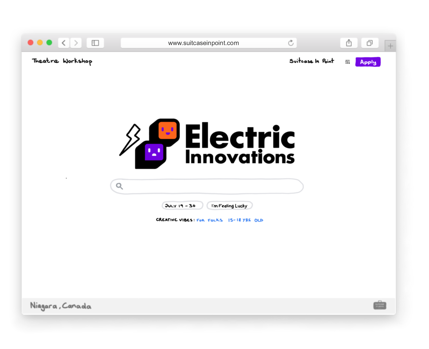 | We partnered with our freind from Suitcase In Point and the National Theatre School of Canada to Brand and Launch Electric Innovations. We designed an electric brand identity and paired it with a series of animated videos to promote the program before it launched. This two-week online theatre experience offered participants a unique opportunity to develop their own creative practices. It taught them to explore and develop their artistic voices while providing the participants a chance to collaborate on the creation of their own original digital production. Full Project Here* ︎ |