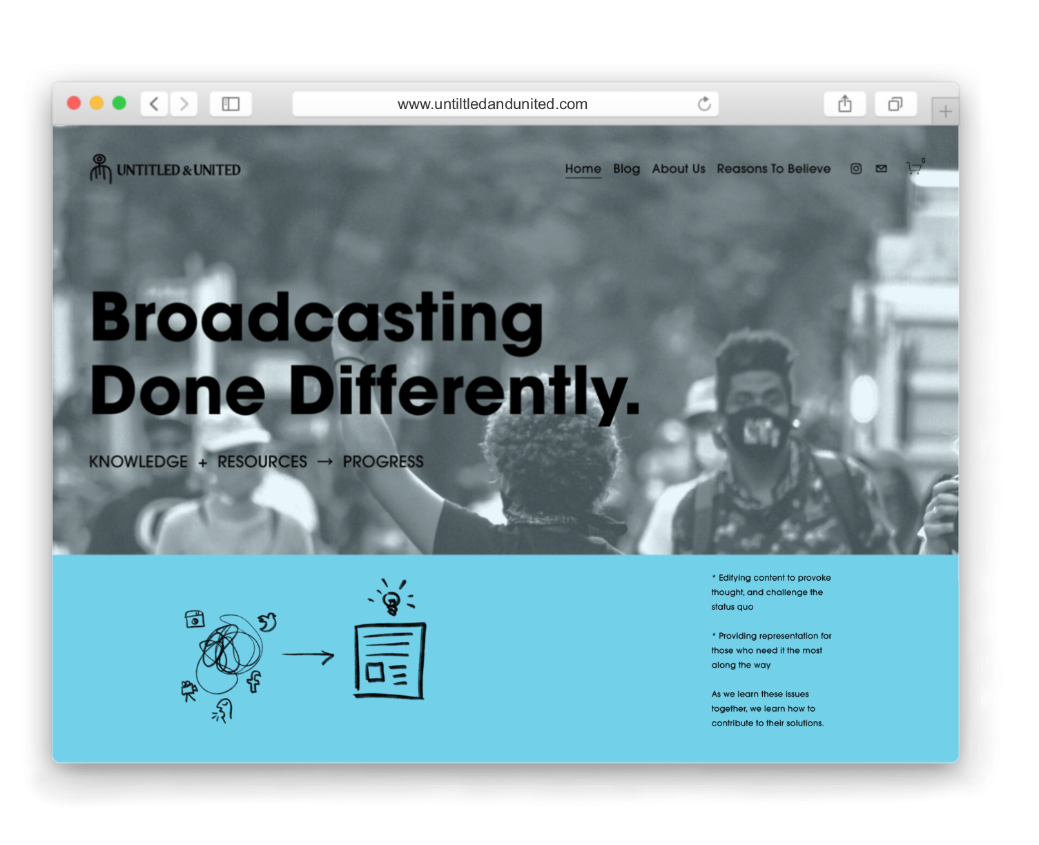 | As a studio, we advocate for activism. So we were flattered when we were approached by the founders at Untitled & United to develop their brand Identity, Website and Art Direction. Untitled & United is a broadcasting company that shines light on society’s issues, culture and politics in a way that millenials can understand. They highlight existing solutions while creating new ones based on innovative research and problem-solving techniques. To say the least, we’re big fans, check them out! Full Project Here* ︎ ![]() |